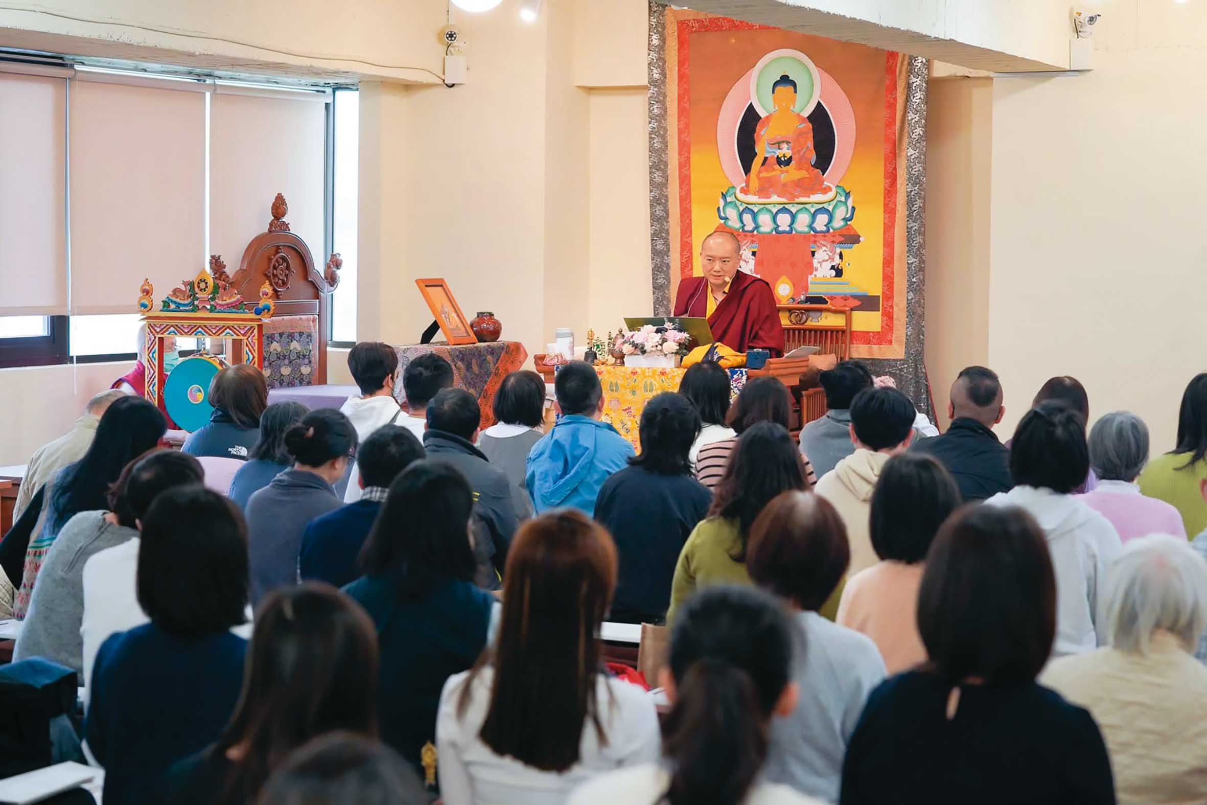 本月4日、清明連假期間,新北板橋文化路的建華新城活動中心舉行一場佛學法會,吸引了近百名信眾到場,主講人是台灣藏傳佛教界頗具聲望的喇嘛多傑仁卿,整場法會從上午一路持續到傍晚,結束前,信眾恭敬地排隊接受多傑仁卿的祝福,結束後,不少信眾繼續圍繞在多傑仁卿身旁,似乎意猶未盡。