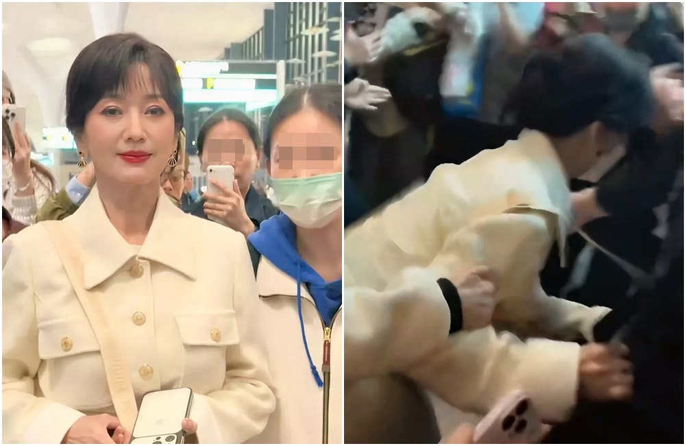 趙雅芝在機場差點被粉絲擠倒。(翻攝微博)