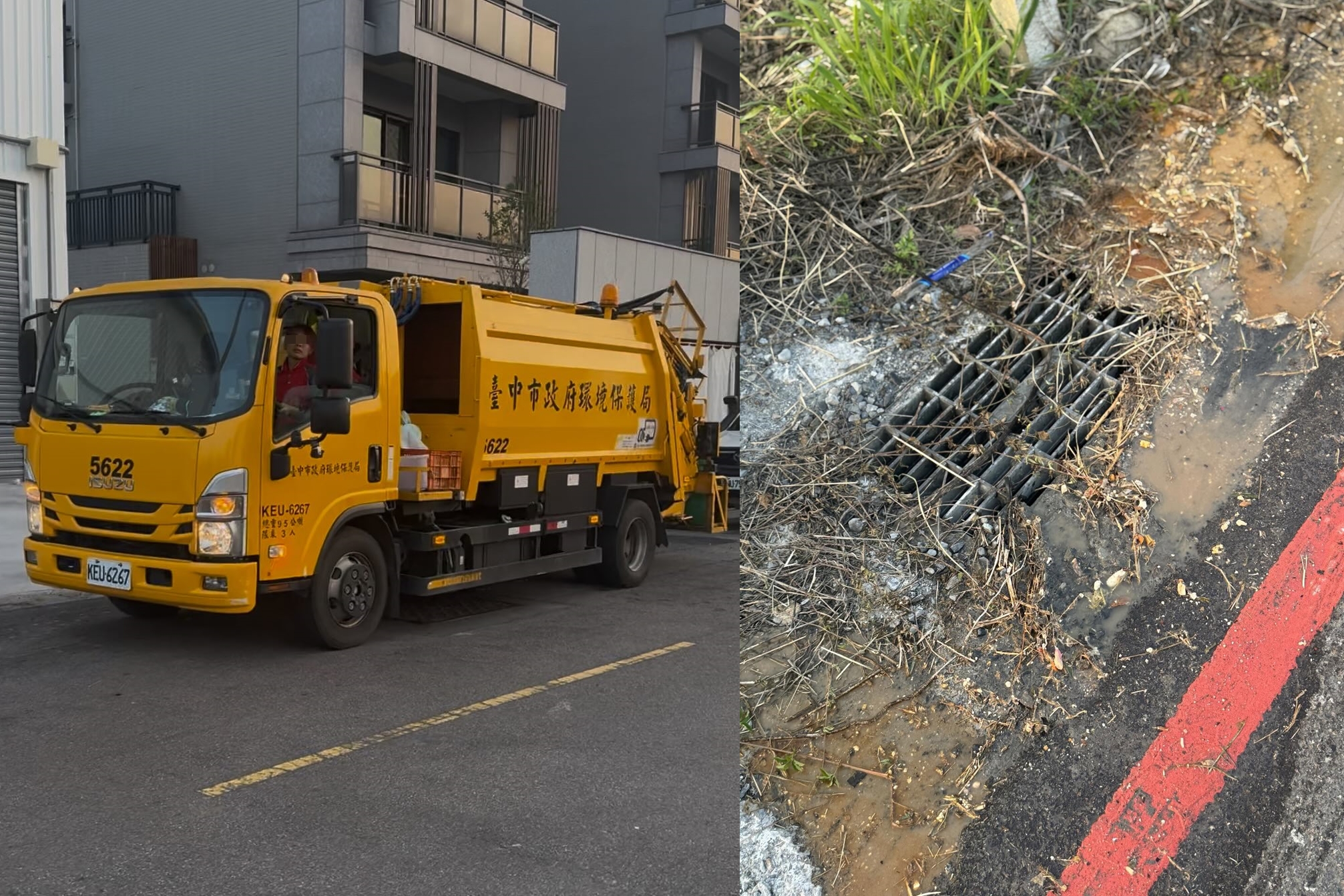 台中市爆發嚴重的市政治理爭議。昨(20日)下午,北屯區街頭驚傳台中市環保局清潔隊「帶頭違法」,2部垃圾車疑似圖方便,竟在偏僻巷弄將惡臭難聞的廚餘汙水直接排入路邊排水溝。此舉造成整條街道臭氣繚繞、滿地殘渣,整個違法過程被目擊民眾當場攔截並錄影上傳至社群平台,引發網路輿論沸騰,網友紛紛砲轟環保局儼然變成「偷倒局」,更直指台中市府「螺絲掉滿地」。