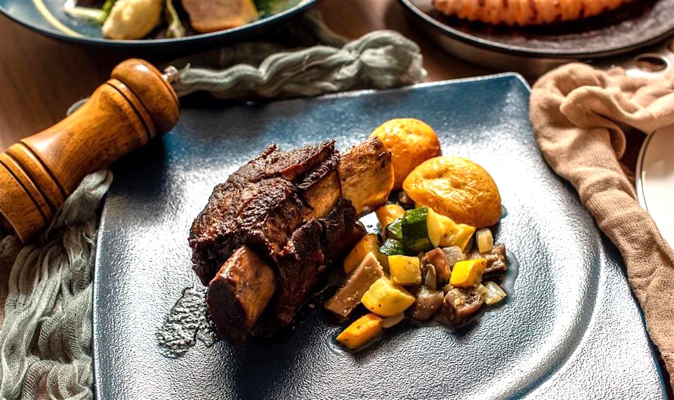 這道料理以厚切帶骨牛小排先煎後燉,融入紅標米酒、蒜頭、醬油等台味元素,慢火燉煮約1.5小時,呈現外層濃郁、內裡軟嫩多汁的口感,是波麗路融合西餐技法與台灣風味的代表作。