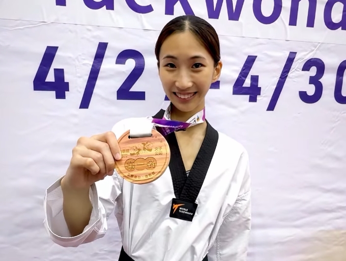 全國大專院校運動會近日在桃園中央大學登場,今日登場的賽事包括跆拳道對打公開女生組46公斤級的賽事,曾獲全大運金牌、世大運銀牌的體大好手黃映瑄,上午因為對手澎湖科大陳柔蓁被判失格而晉級,下午先後擊退弘光科大蔡依珊、彰化師大范羽喬,順利奪下金牌,成功在全大運二連霸。