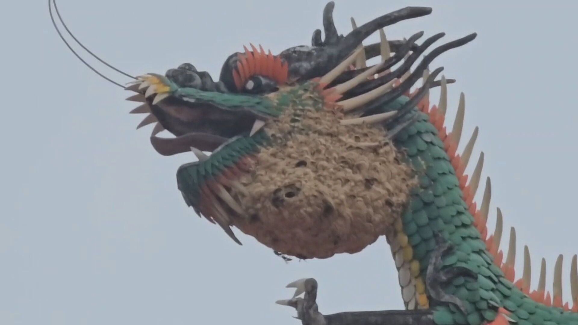 龍型交趾陶長「雙下巴」? 台南孔廟驚現「籃球大」虎頭蜂窩