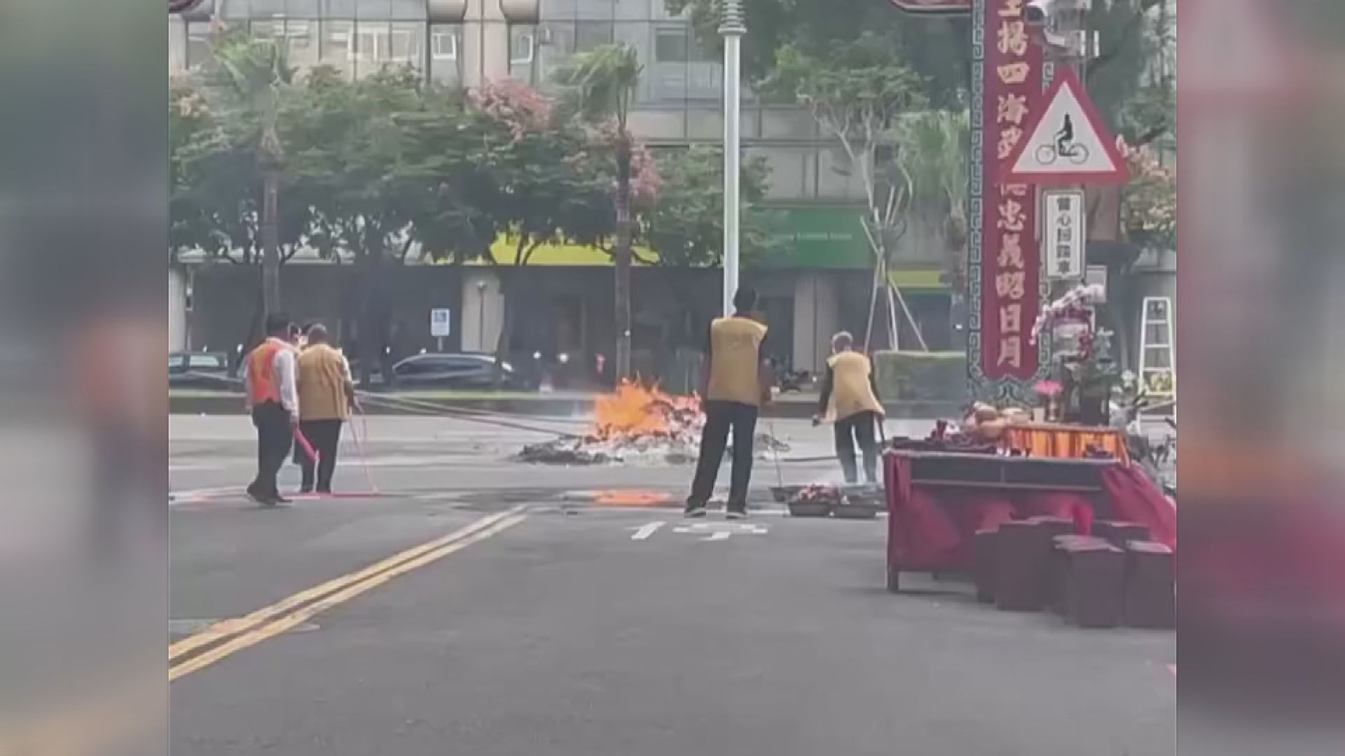 高雄寺廟「柏油路面」燒金紙 辯稱有「路權」遭警制止