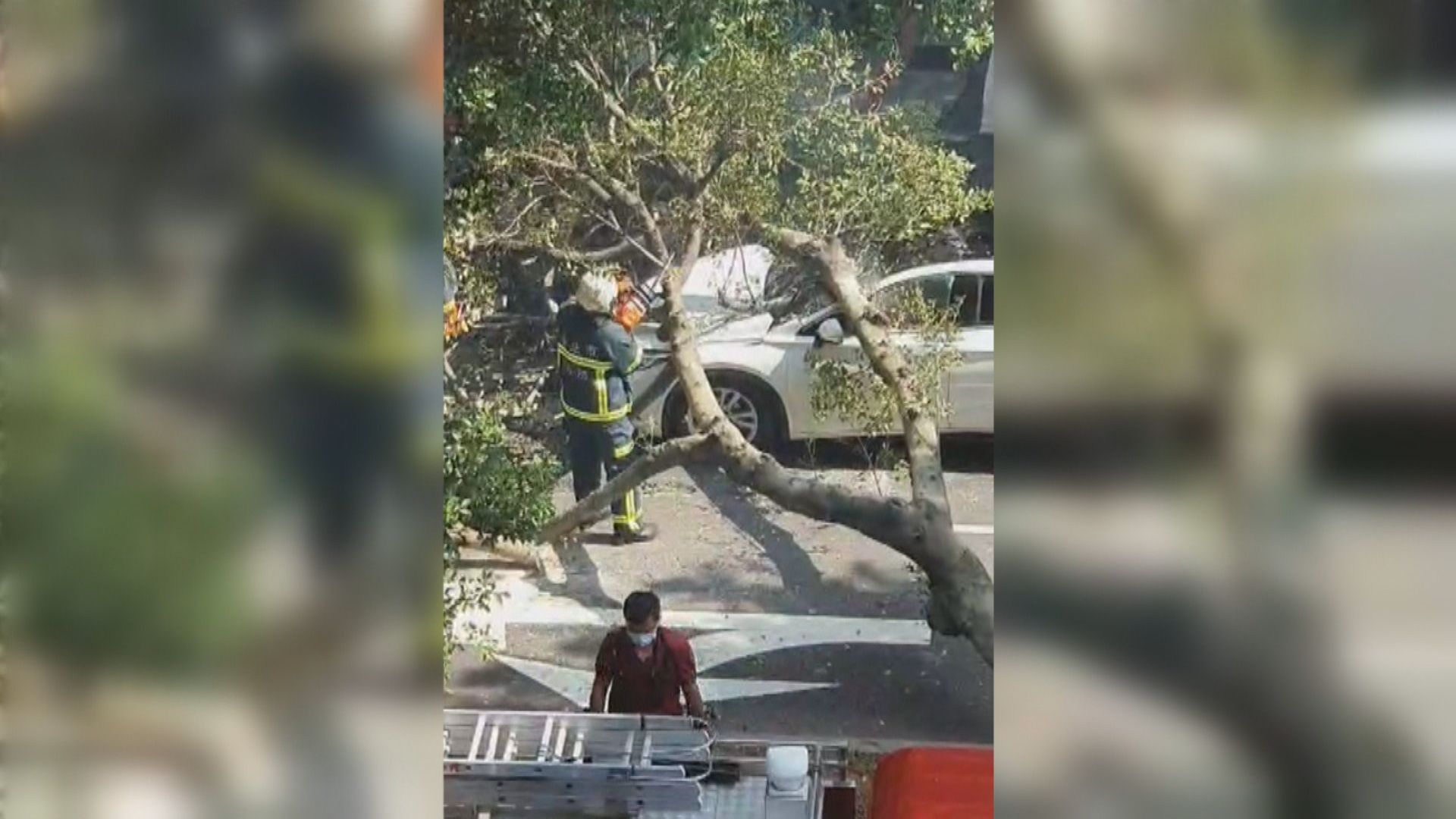 分隔島路樹突倒塌 砸中籃球球員轎車